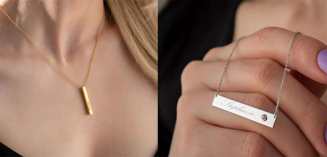 Get a gorgeous bar necklace or bracelet engraved with anything you want...