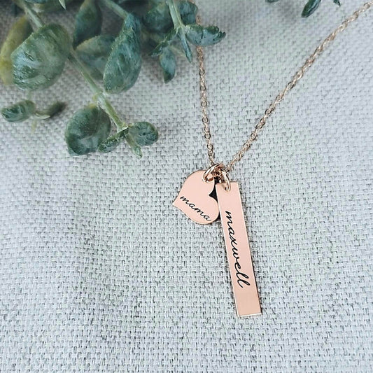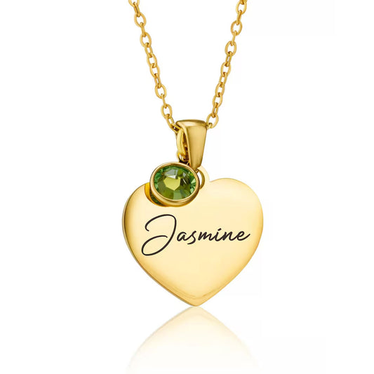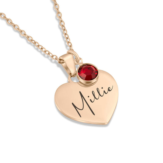 Personalized Heart and Birthstone Name Necklace In Rose Gold