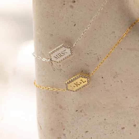 Personalized Hexagon Bracelet with Pave Diamonds In Gold
