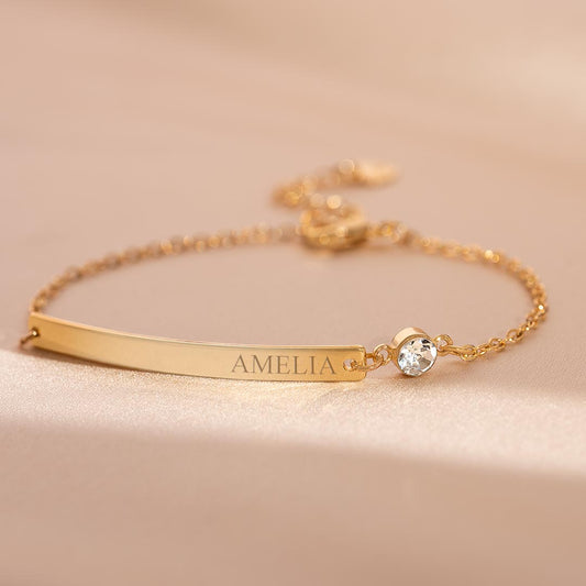 Personalized Initial Disc and Birthstone Bracelet In Gold