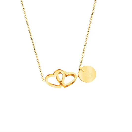 Double Heart Initials Necklace