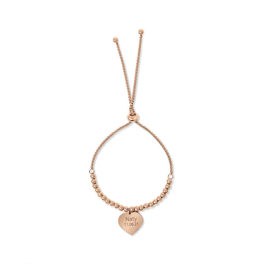 Beaded Bracelet with Heart Pendant in Rose Gold