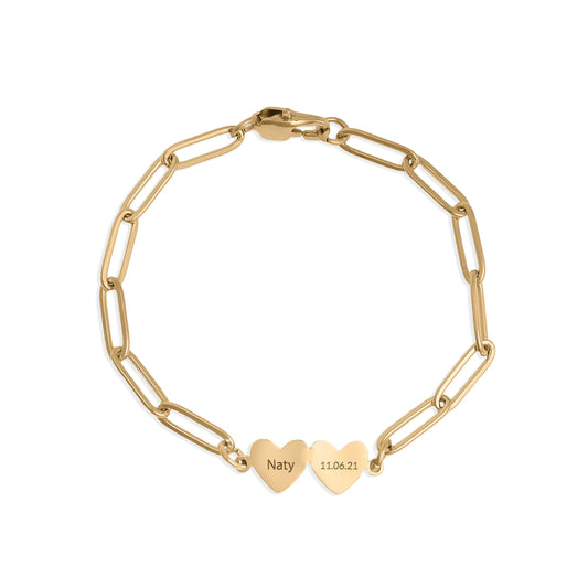 Double Heart Initials Bracelet In Gold