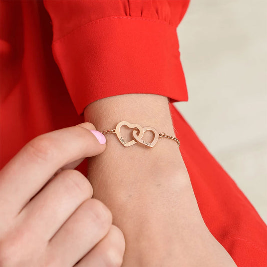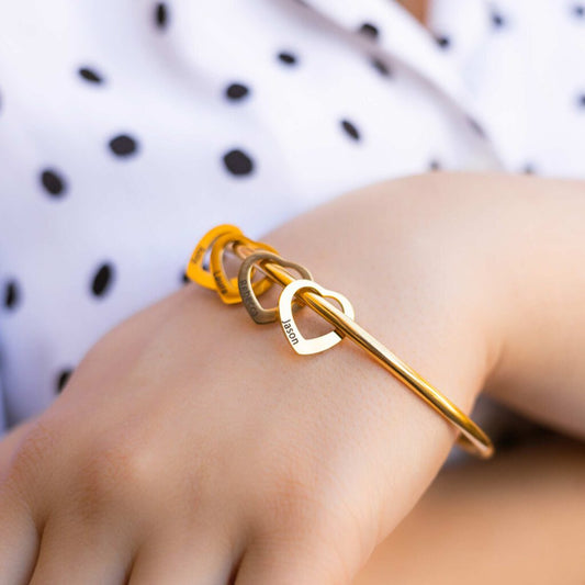 Bangle Bracelet with Heart Pendants in Rose Gold