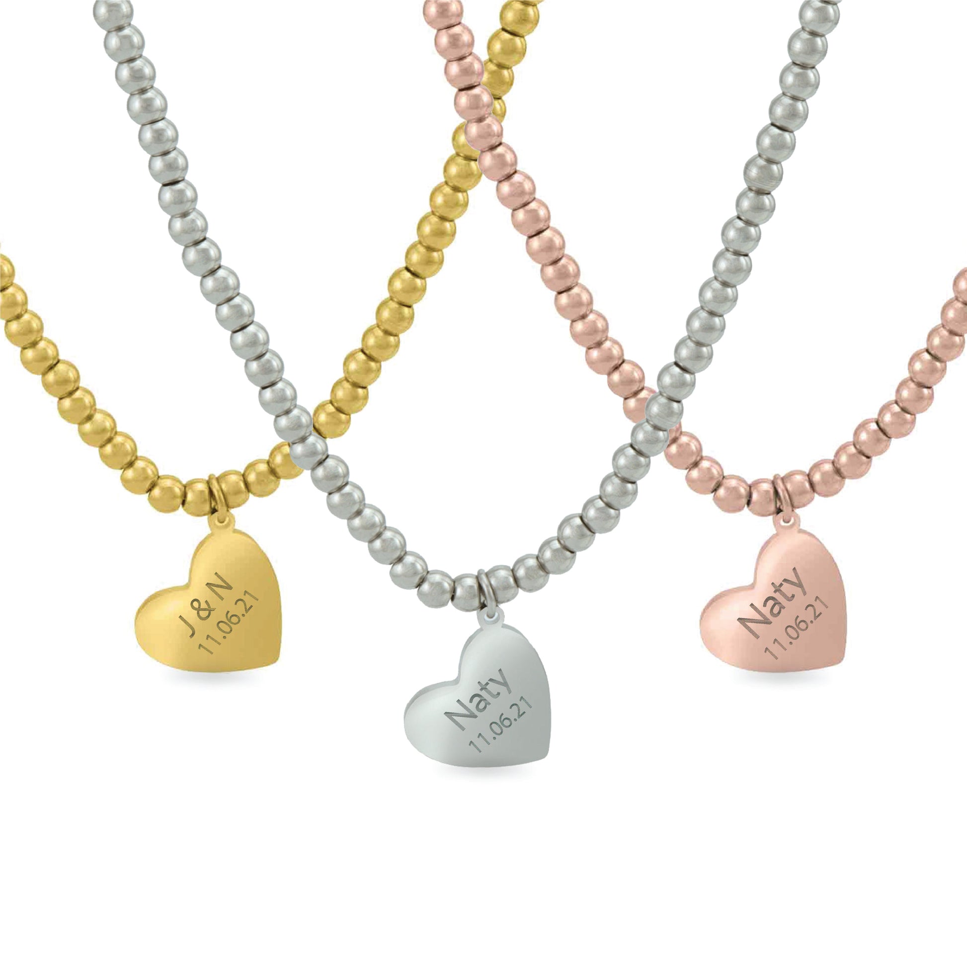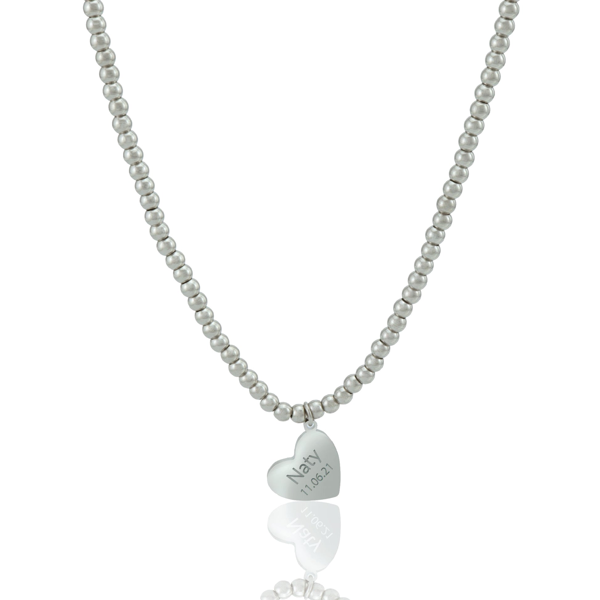 Surprise your loved one with this Engravable Heart Beaded Necklace! Show your affection and personalize the heart pendant with a special message. The bead chain adds a touch of elegance to any outfit. Share your love and make memorable moments with this beautiful necklace.
