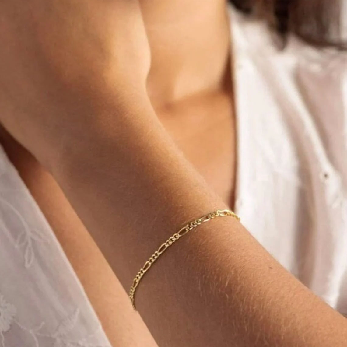 Upgrade your style with our elegant Gold Figaro Chain Bracelet. Made of high-quality gold, this bracelet adds a touch of sophistication to any outfit. Perfect for any occasion, our Figaro Chain Bracelet will elevate your look and make you stand out from the crowd. Effortlessly classy!