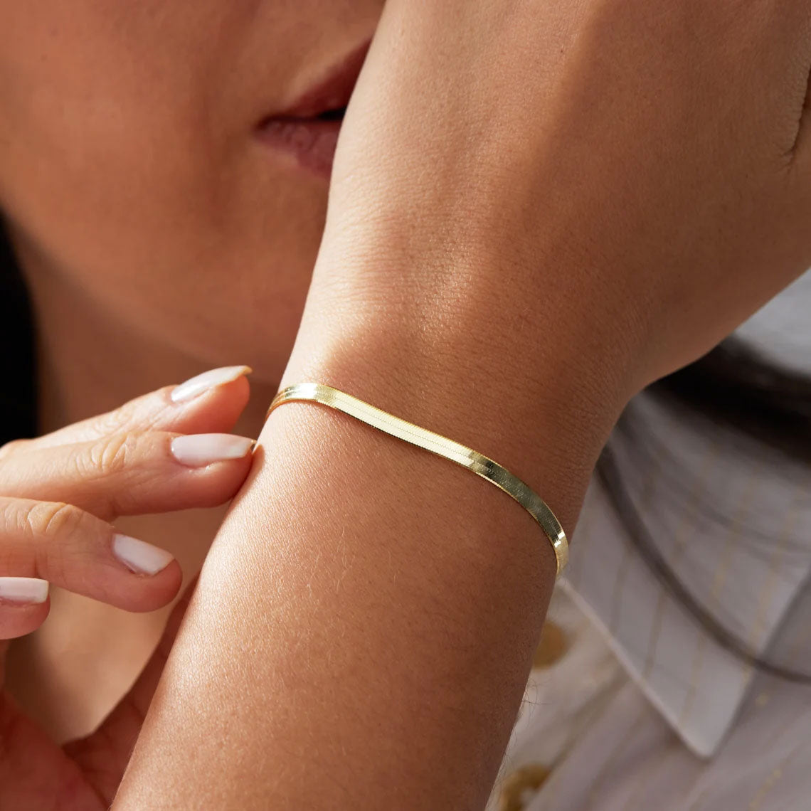 Elevate your style with our Herringbone Chain Bracelet. Made of high-quality materials, this timeless piece adds a touch of sophistication to any outfit. The classic herringbone design exudes elegance, making it the perfect accessory for any occasion. Leverage the benefits of this versatile bracelet to elevate your fashion game.