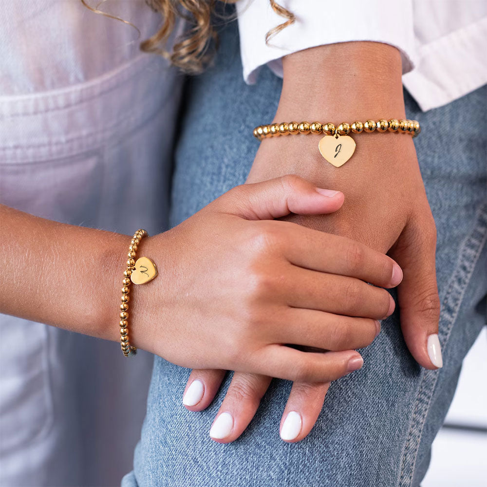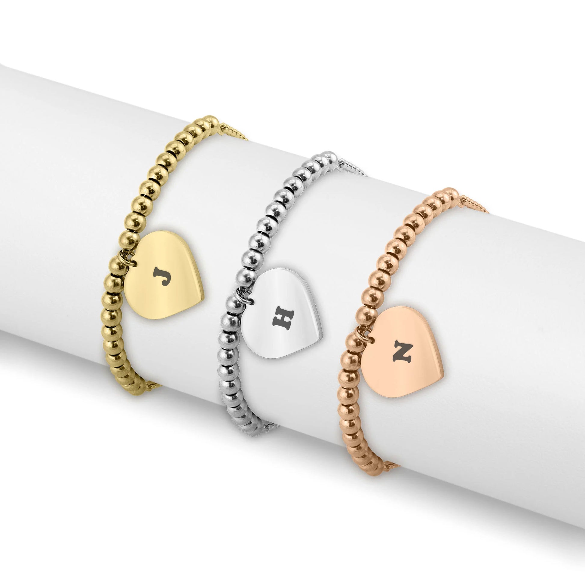 Indulge in effortless elegance with our Initial Heart Beaded Bracelet. This exquisite piece features a delicate heart charm engraved with your chosen initial, expertly crafted with shimmering beads. Elevate any outfit and make a personal statement with this luxurious accessory.