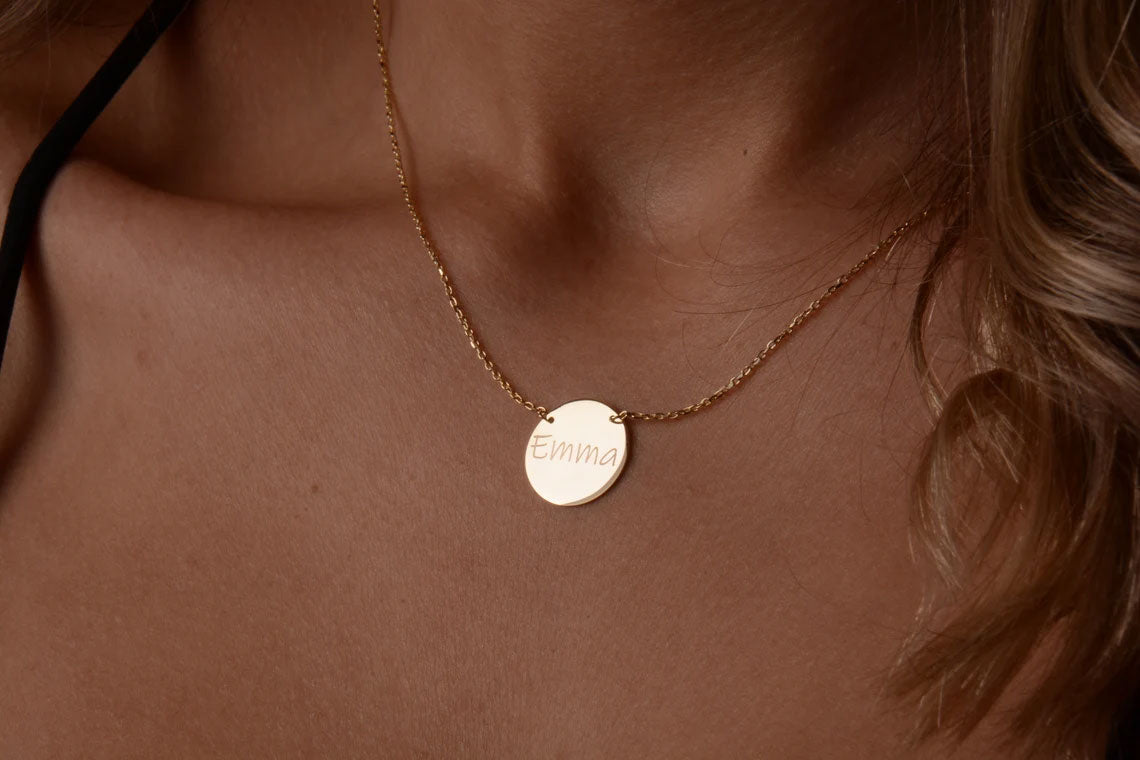 Experience the perfect blend of simplicity and personalization with our Minimal Personalized Small Disc Necklace. Featuring a small disc pendant, this necklace can be customized with your own initials or those of a loved one. Elevate any outfit and make a subtle statement with this unique and meaningful piece.