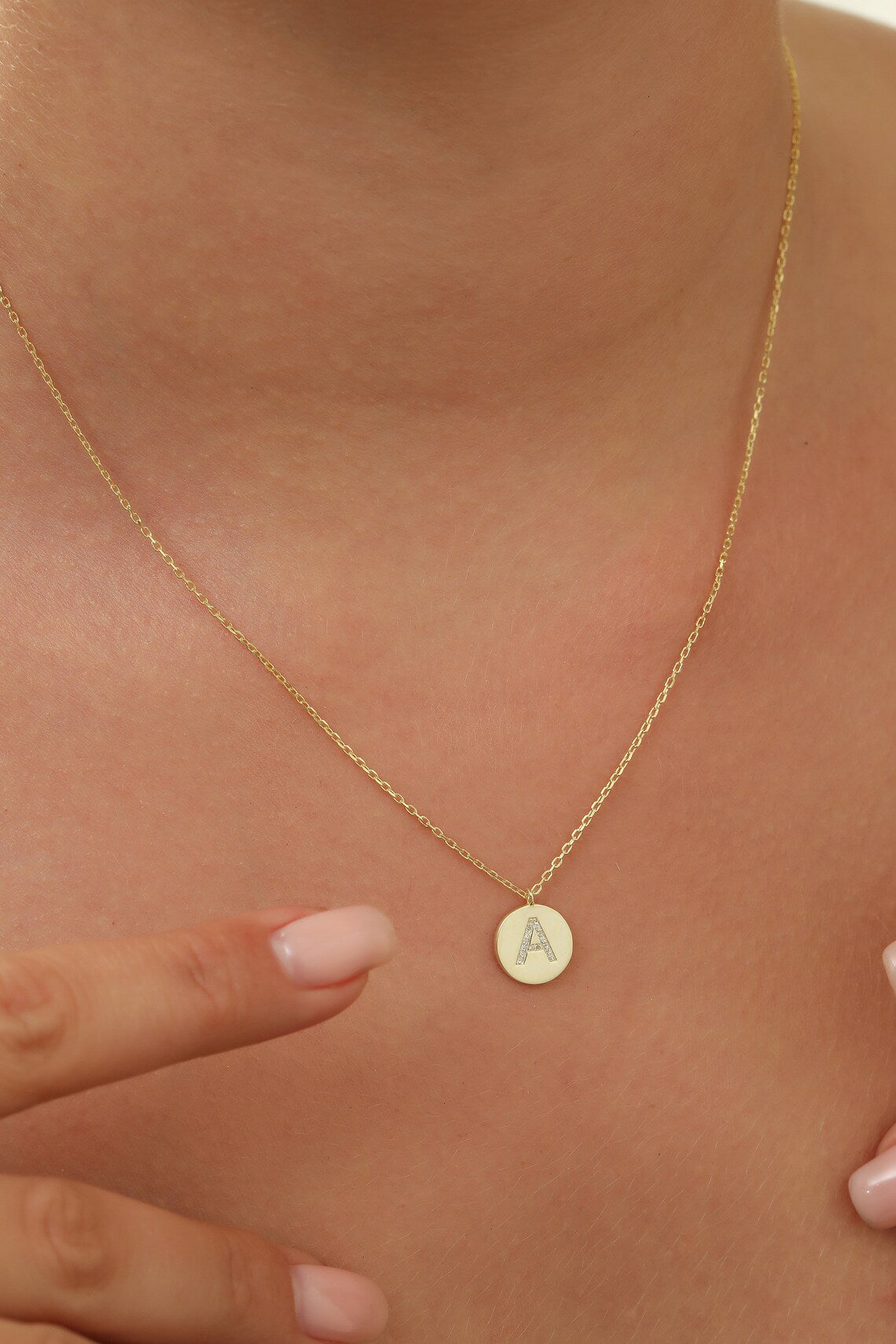This Minimalist Diamond Initial Disc Necklace is the perfect piece for anyone seeking a classic and elegant accessory. Featuring a delicate disc pendant encrusted with sparkling CZ stones, personalized with your chosen initial, this necklace adds a touch of sophistication to any outfit. A timeless piece for everyday wear or special occasions.