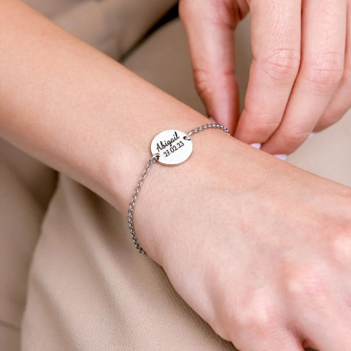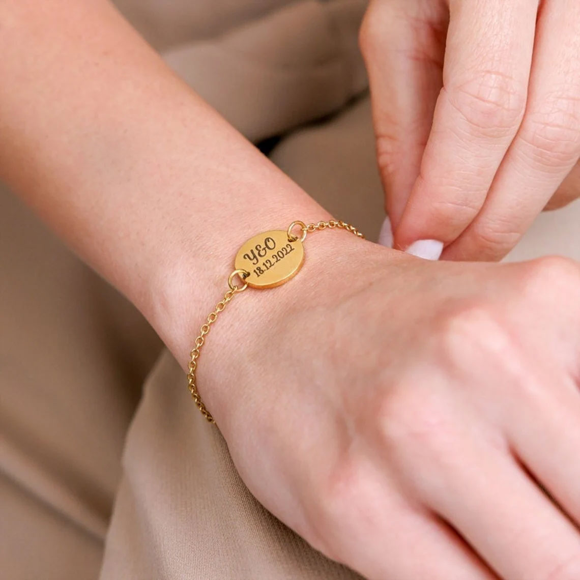 Add a personal touch to your accessory game with our Personalized Coin Disc Bracelet. This unique piece lets you display your individuality with a customized coin charm. A stylish and playful addition to any outfit, perfect for those who like to stand out from the crowd!