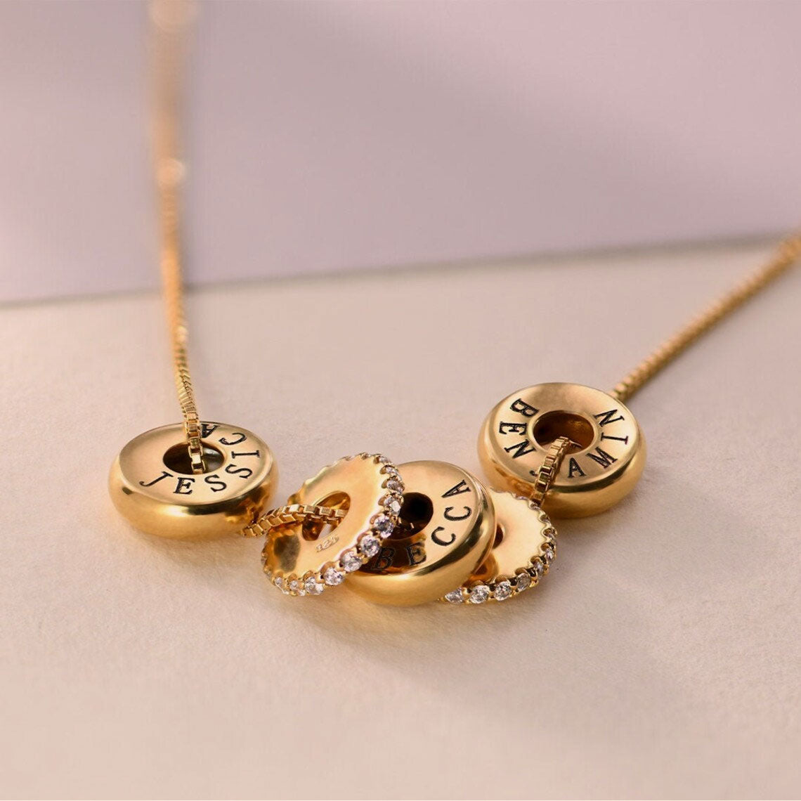 Introducing our stunning Personalized Disc Necklace With Diamond Disc's in between each personalized disc! This luxurious necklace features a elevate disc charm that can be engraved with a personalized message or name, adding a personal touch to any outfit. The added diamond detail adds a touch of elegance and sparkle. A perfect gift for any special occasion.