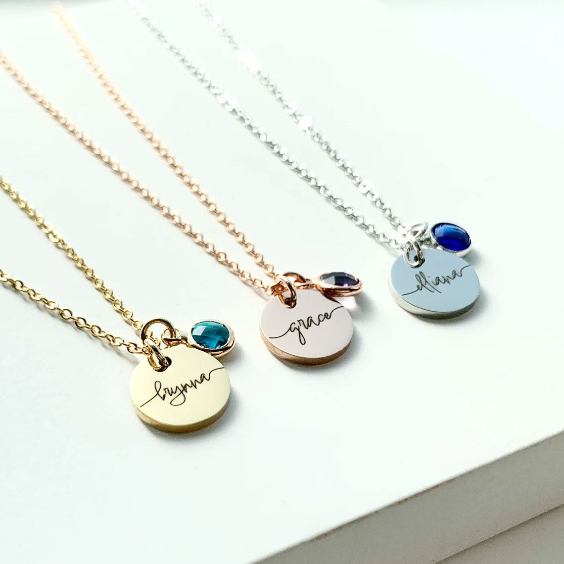 Customize this stunning Rose Gold birthstone necklace with a personalized disc, expressing your unique style and personality. Add your birthstone for an extra touch of sentimentality and create a one-of-a-kind piece to treasure forever.