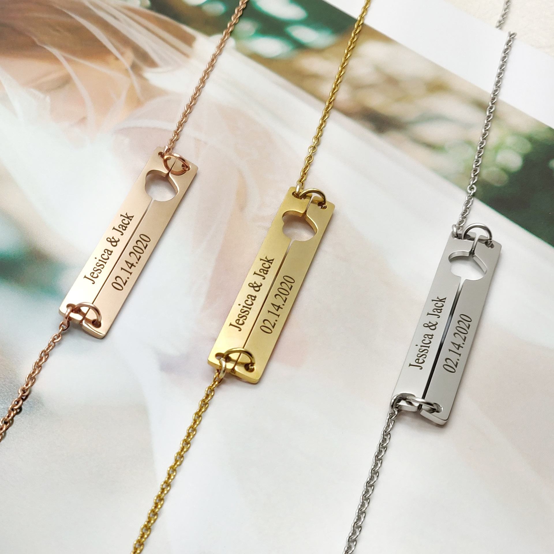 Show off your unique style with our Personalized Double Bar Necklace with Heart Cutout in Rose Gold! This one-of-a-kind necklace features two bars with a heart cutout in the center. Make a statement with this personalized accessory!