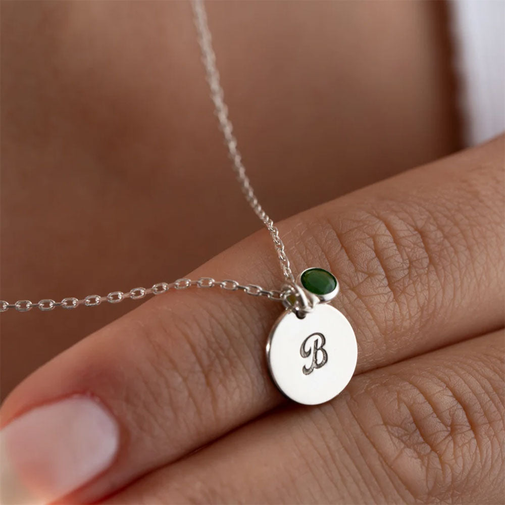 Indulge in luxury with our Silver Personalized Initial Disc and Birthstone Necklace. Crafted with a delicate initial disc and sparkling birthstone, this bracelet is a uniquely personal and sophisticated accessory. Express your individuality and elevate any outfit with this exclusive piece.