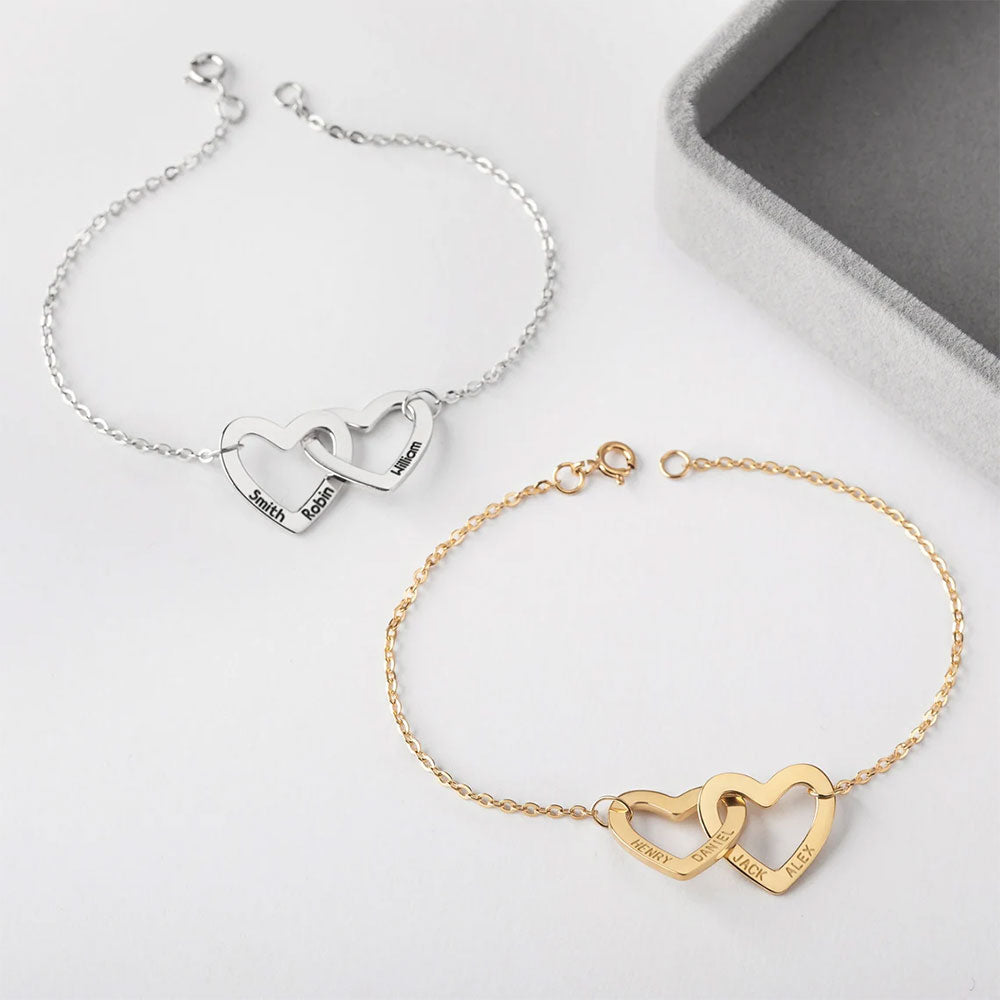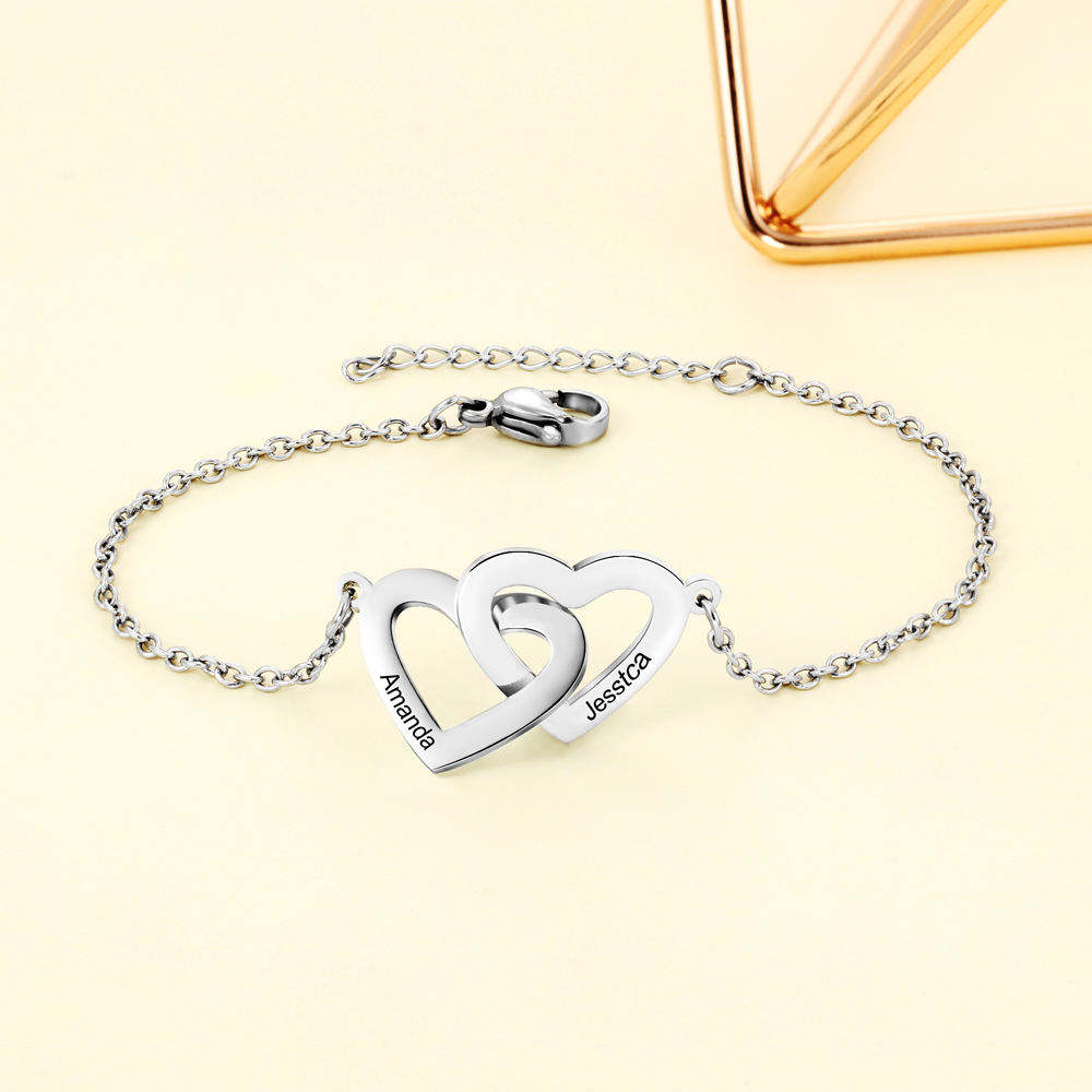 This stunning Engravable Interlocking Double Heart Bracelet in Silver adds a personalized touch to any outfit. The beautifully crafted double heart design symbolizes the bond between loved ones. With the option to engrave a special message, it makes for a meaningful gift that will be treasured for years to come.