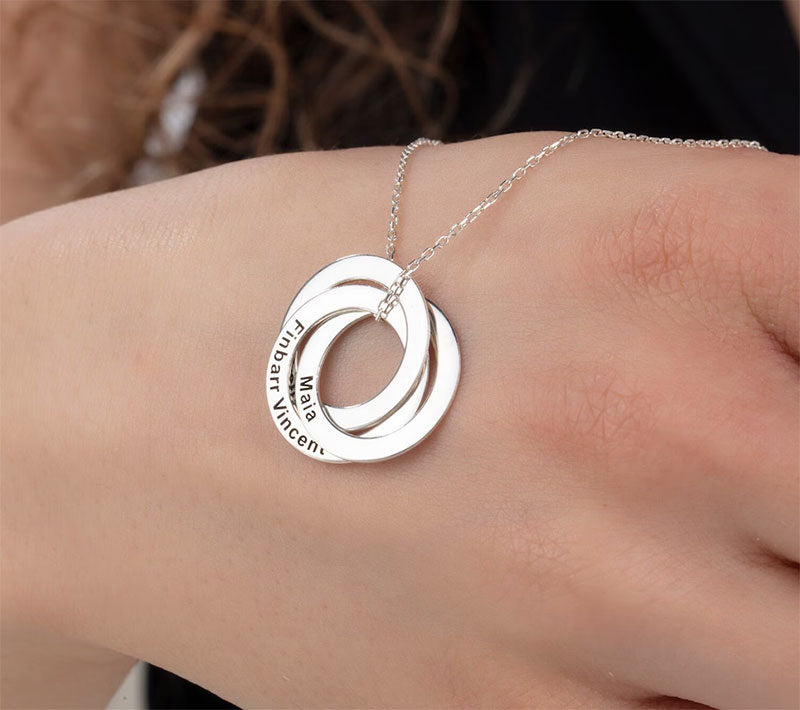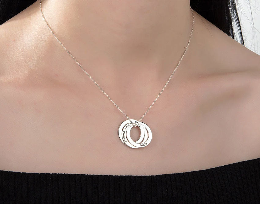Capture the beauty of love and unity with our Engravable Interlocking Russian Rings Necklace in Silver. This stunning piece allows you to customize each ring with a personal engraving, making it a heartfelt gift for yourself or a loved one. Show your bond and create cherished memories with this unique and meaningful necklace.