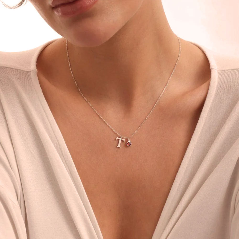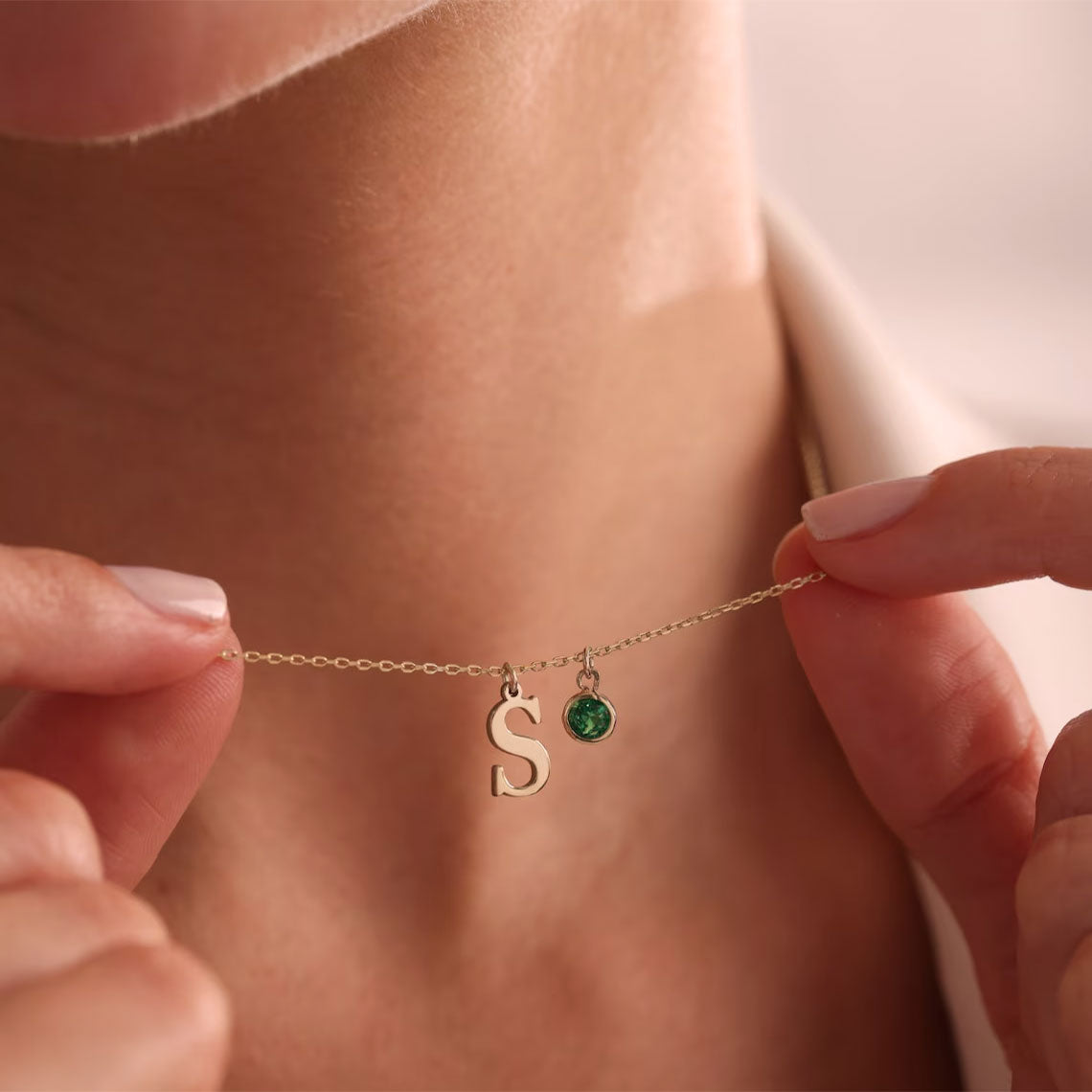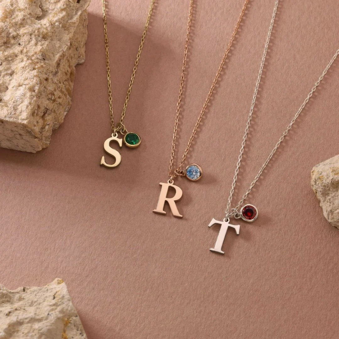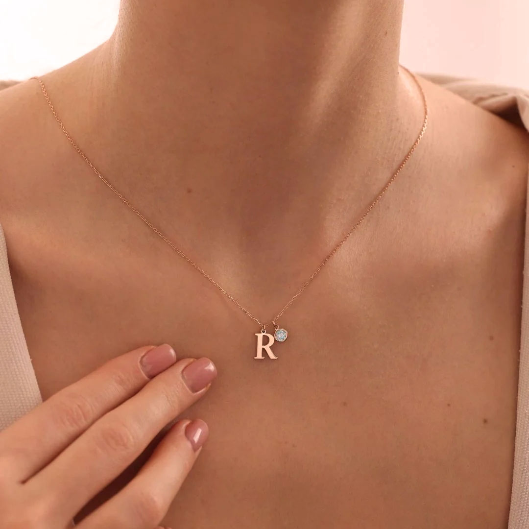 This delicate necklace features a personalized letter charm, adorned with a stunning birthstone. Handcrafted with care, this unique piece makes a perfect gift for a loved one or a special addition to your jewelry collection. Celebrate individuality with this elegant and sentimental birthstone necklace.