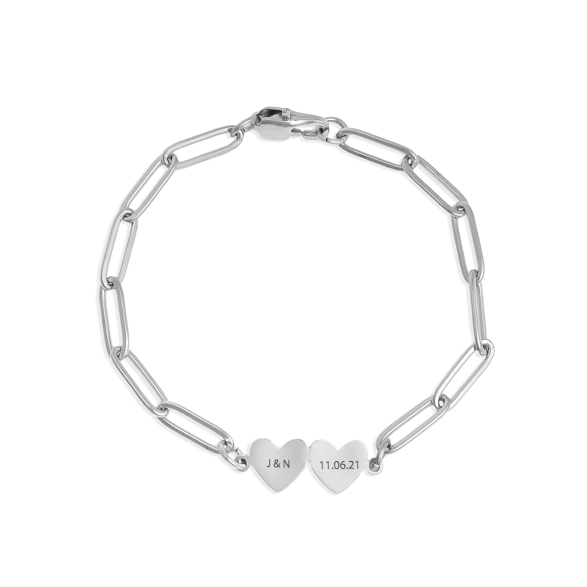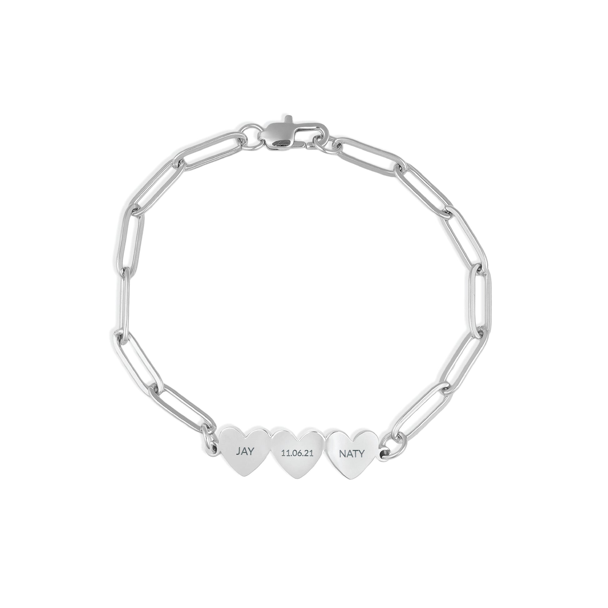 Add a touch of charm and fun to any outfit with our Personalized Paperclip Chain Heart Bracelet in Silver. Show off your personality with a personalized heart charm on a trendy paperclip chain. Keep your loved ones close to your heart or make a bold statement - the choice is yours