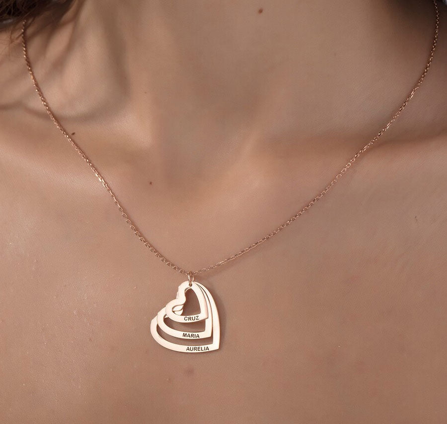 Elevate your style and add a personal touch with our Engravable Stacking Heart Charm Necklace in Rose Gold. Featuring multiple heart charms, you can customize this piece with a special message or name. Show your love and make it uniquely yours. Perfect for gifting or treating yourself to a heartfelt accessory.