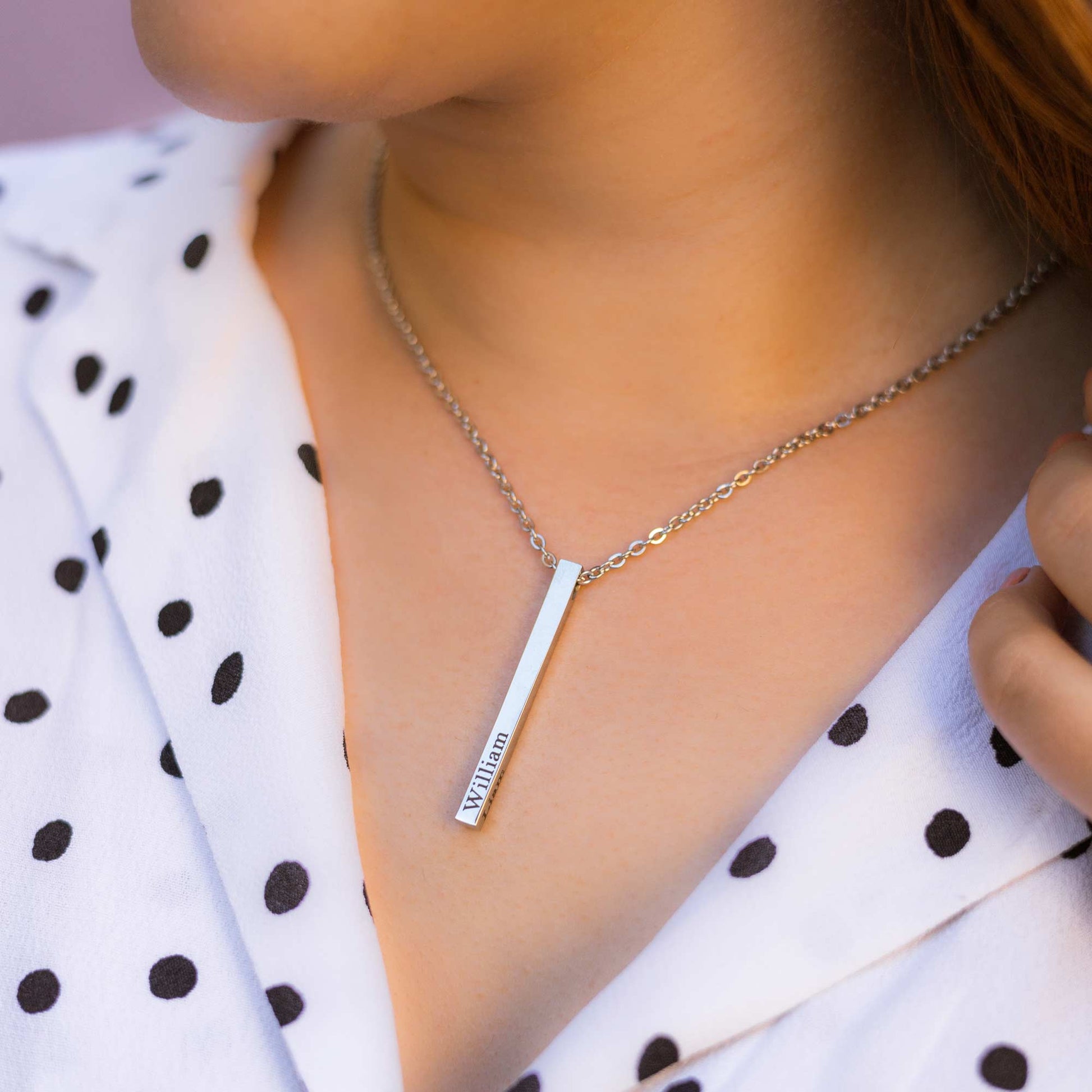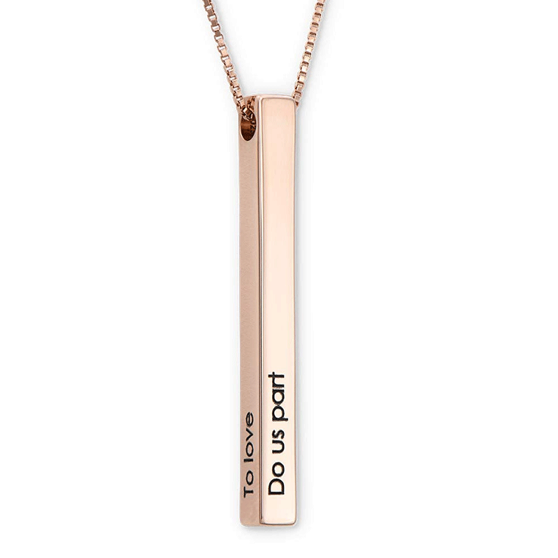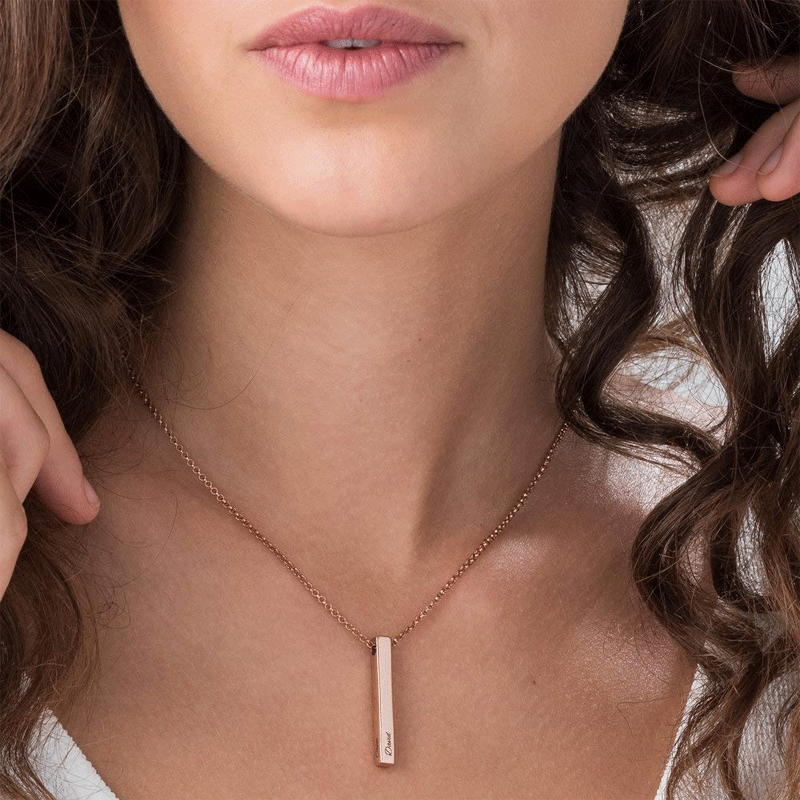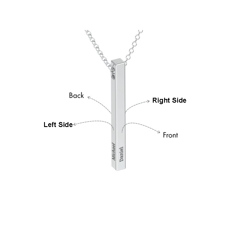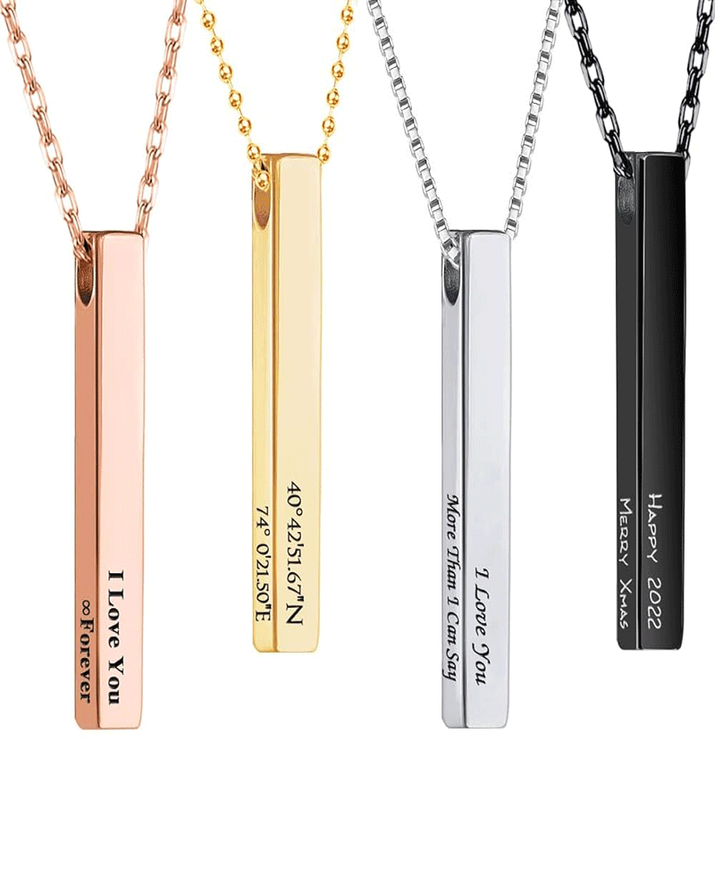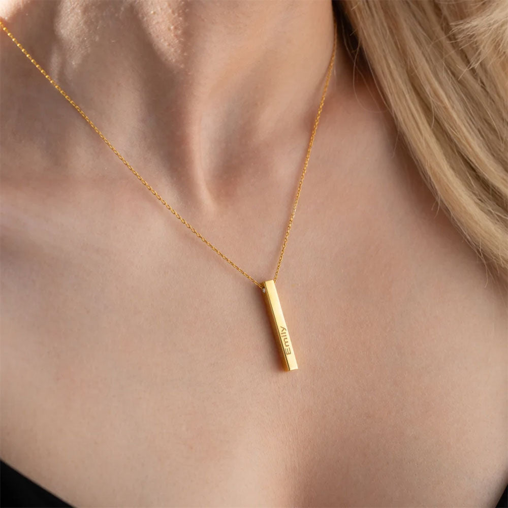 Elevate your style with our Vertical Engraved 3D Bar Necklace! Personalize this sleek and modern piece with a meaningful name, date or message. Handcrafted from high-quality materials, this necklace is a unique and timeless accessory. Make a statement and cherish your memories with this custom necklace! - step up your evening look or add a touch of sophistication to everyday wear with this stylish piece today!